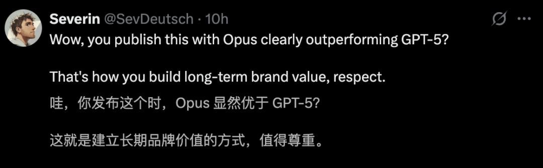 OpenAI坦承:Claude Opus 4.1表现最佳,在接近一半的任务上与专家工作相当或更好,明显优于GPT-5。