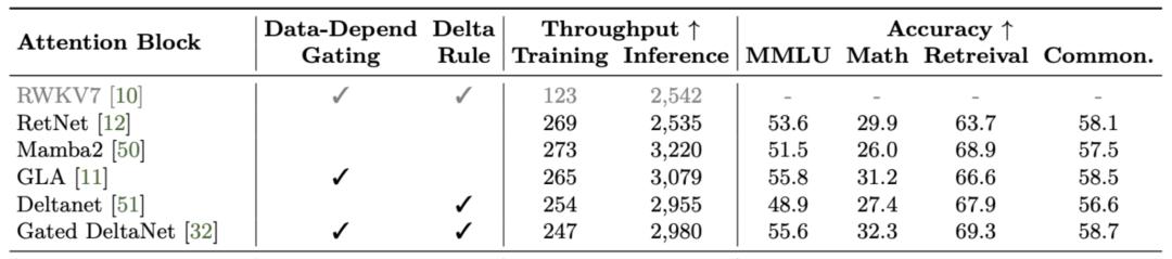 这六个之中,Gated DeltaNet的准确率最高,这主要归功于两个因素: