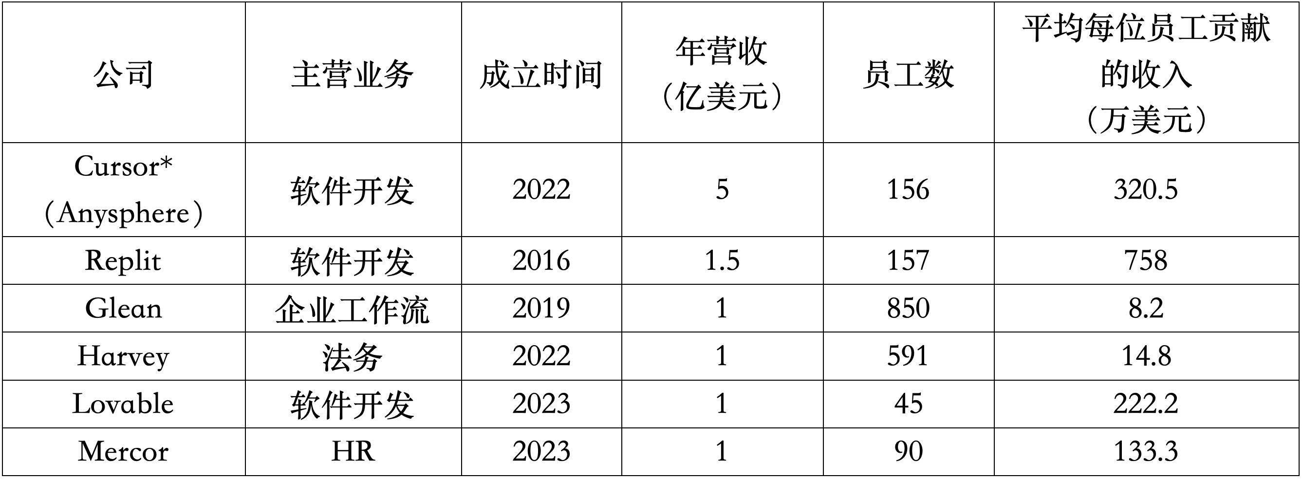 这些创企的产品价值主张完全建立在AI能力之上。Cursor的代码补全、Harvey的法律文书生成、Abridge的医疗记录自动化——这些产品的核心功能在没有AI的时代根本无法实现。它们的产品核心价值随模型的性能提升而提升,而非运营效率。