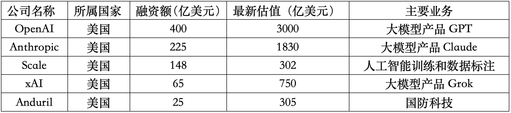表 2:2025年AI领域融资规模前五公司 资料来源:根据公开资料收集整理