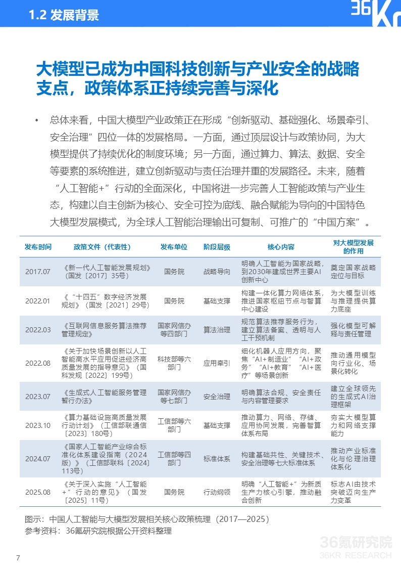 大模型已成为中国科技创新与产业安全的战略支点,政策体系正加速升级