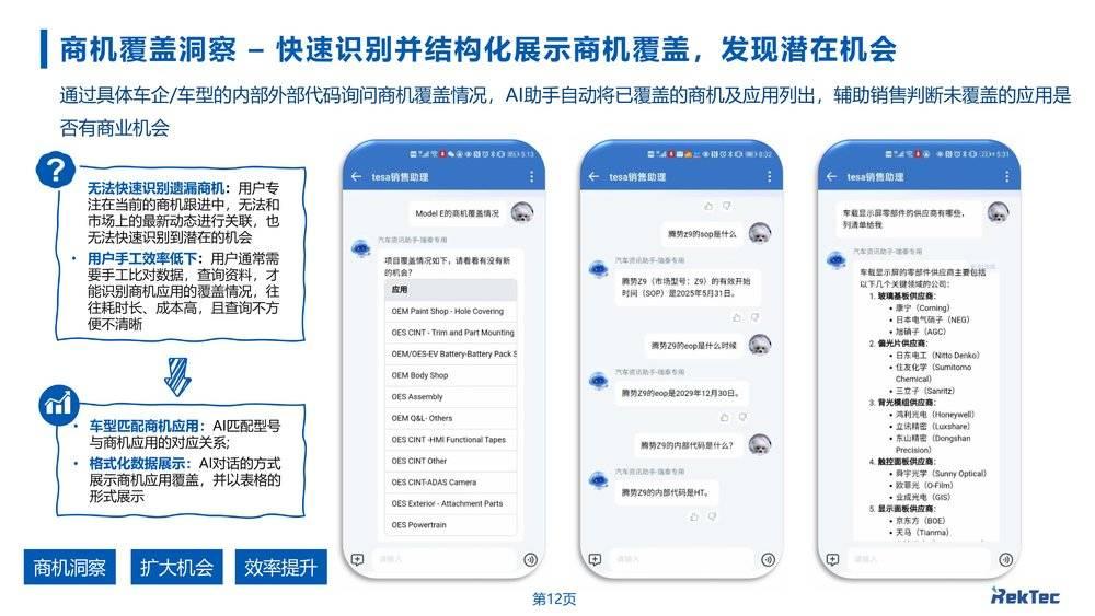 AI商机挖掘师:系统抓取车企预售/研发中的车型,与内部商机系统自动比对,识别未覆盖的潜在机会,主动提醒销售跟进,避免遗漏。