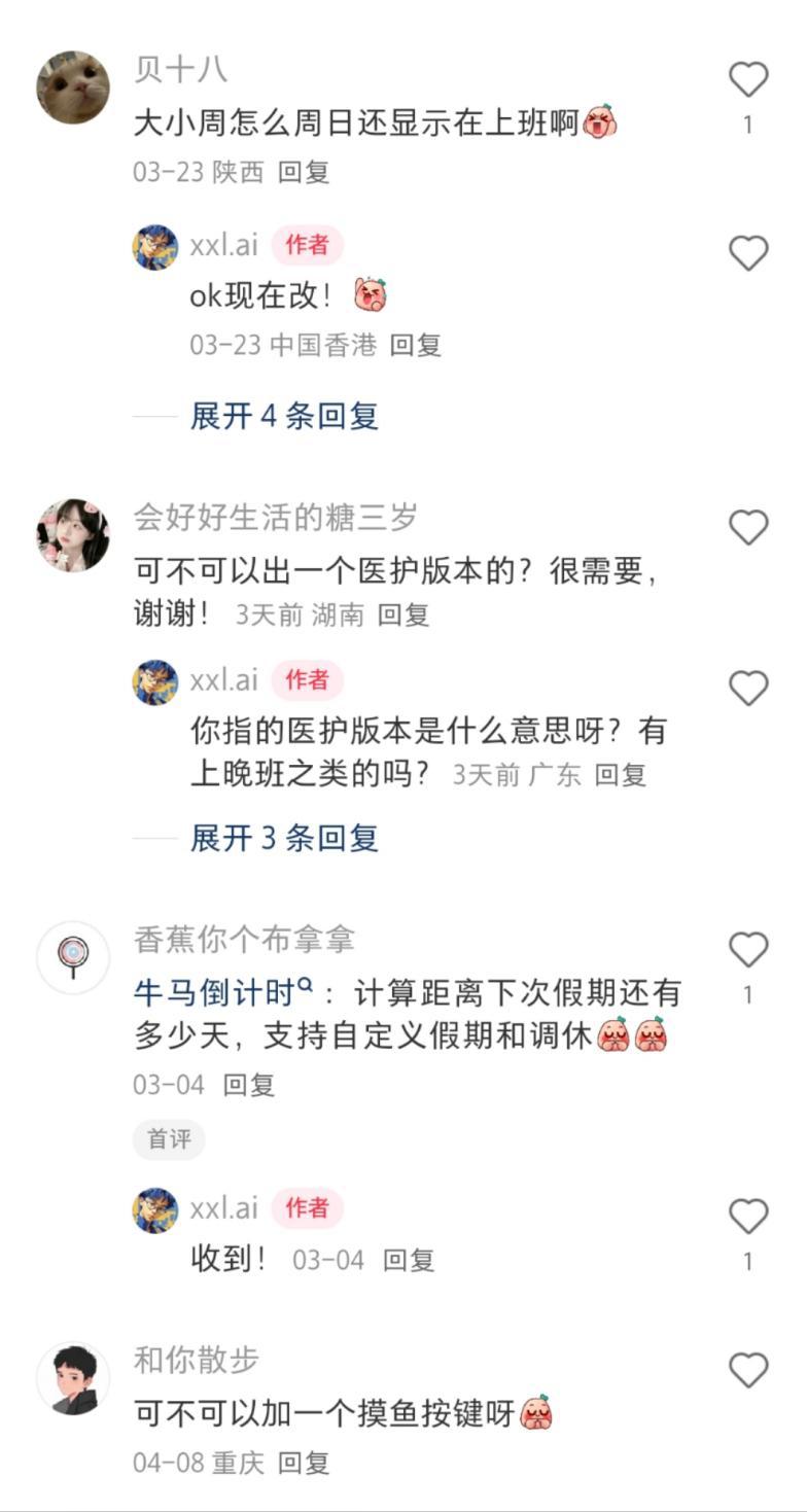 这些真实、宝贵的用户建议,无一例外地激励着刚刚踏上开发者道路的冼星朗。而和更多用户一起“开发”的过程,也让创意、开发到市场的环节被大幅缩短,给冼星朗这个还不是打工人的学生开发者,提供了不断零成本迭代“牛马时钟”的机会。