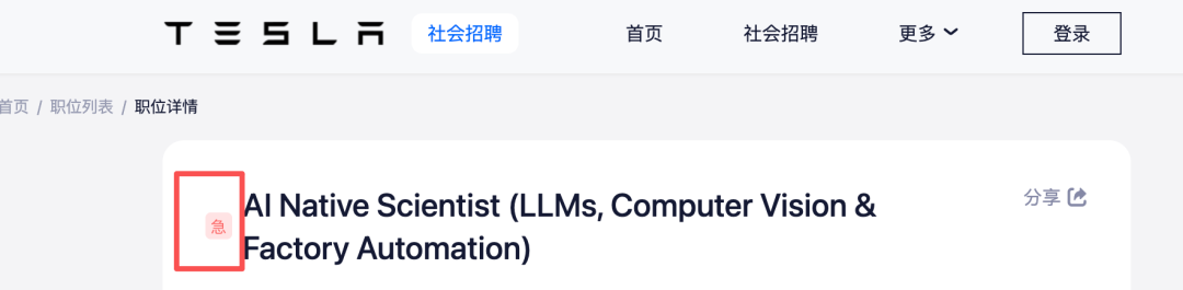 几乎在陶琳接受采访的同一时间,有网友发现,特斯拉在上海已开招AI原生科学家,并且将该岗位标注为: