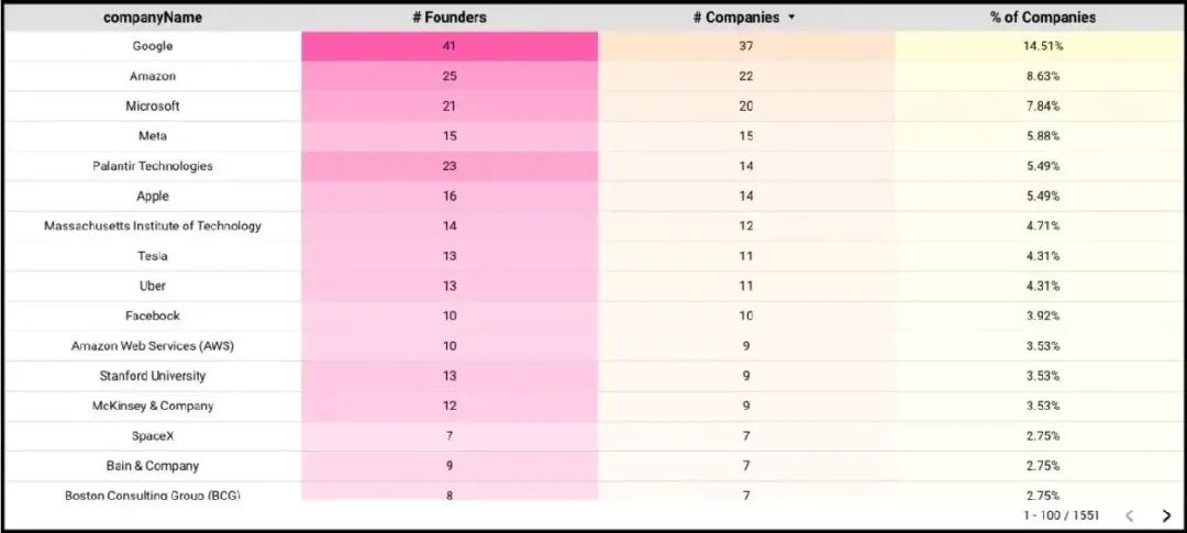 来自斯坦福大学和麻省理工学院的创始人,分别占总数的11%和8%;