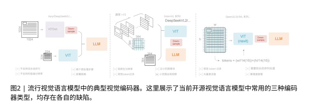 论文明确指出,当时所有的主流VLM架构(如Vary、InternVL2、Qwen2-VL)都无法同时满足这三点。