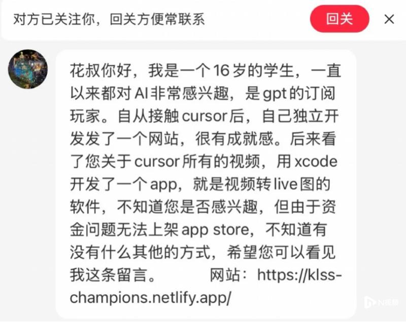 进一步看了平台上的教程视频之后,这个少年发现,有了AI的帮助,做一款产品似乎也没那么困难。这启蒙了冼星朗的AI编程意识,他开始自学开发,把自己泡在AI编程的视频教程里,用一款名为“Cursor”的主流AI编程软件开启了高中生活的转折点。