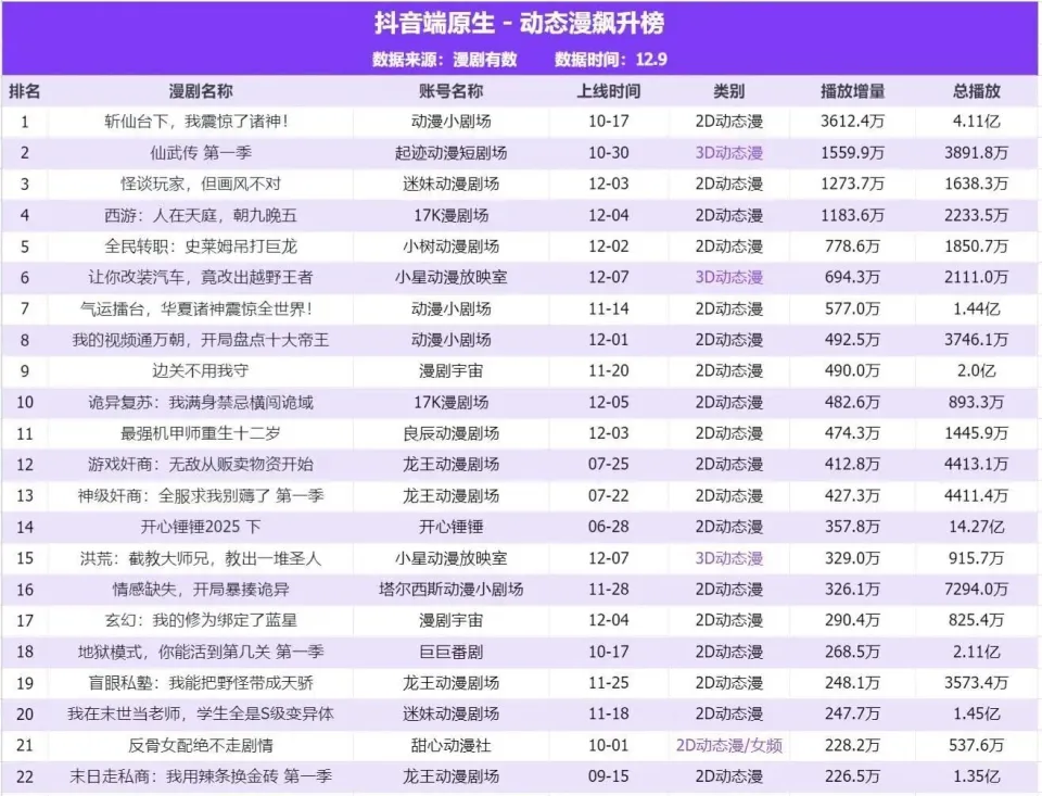 而《斩仙台下,我震惊了诸神》在红果短剧和红果漫剧都稳居榜首,还在刚刚过去的12月斩下了更为惊人的抖音10亿的播放总量。